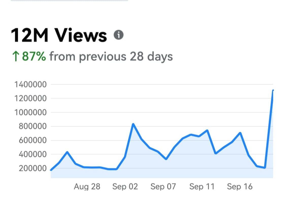 • 12 million views — an 87% increase from the previous period.