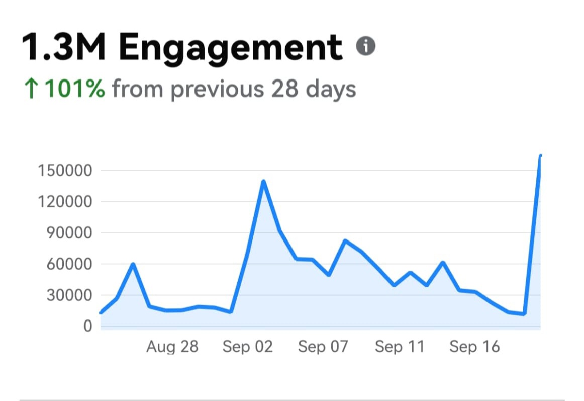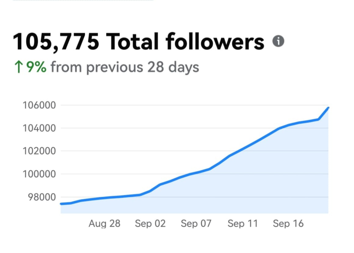 • Over 105,000 followers — a steady 9% rise in less than a month.
