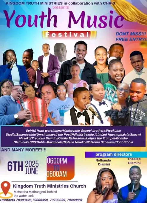 MATSAPHA – Get ready for a night of worship like no other! This Friday, June 6, 2025, the town of Matsapha will come alive with sound, spirit, and soul as the Youth Music Festival takes over Kingdom Truth Ministries Church for a full 12 hours of non-stop praise.