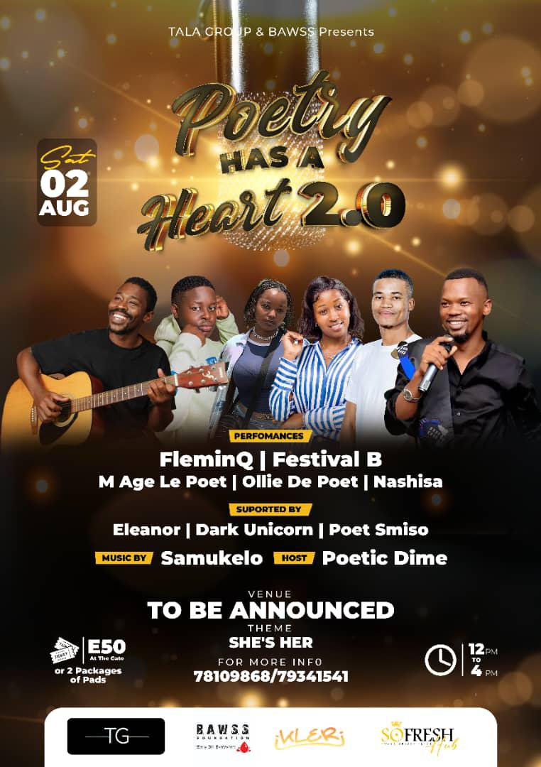 MBABANE – Poetry Has a Heart 2.0” is set to take place on Saturday, August 2nd, 2025, from 12 PM to 4 PM in Mbabane, blending art with activism to support girls in need.